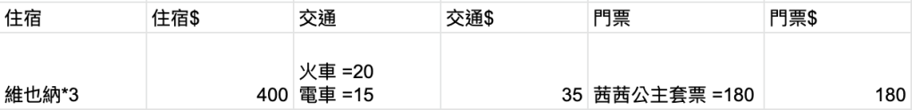 貼心提醒:旅行中,我們當然不會每付了一次錢就開啟雲端文件記帳,因此可以先將當天每一筆的花費記錄先統一記在手機的記事本或是旅行的紙本記事本上,待晚上回到住宿休息時,再一次將今日花費記錄到雲端文件。