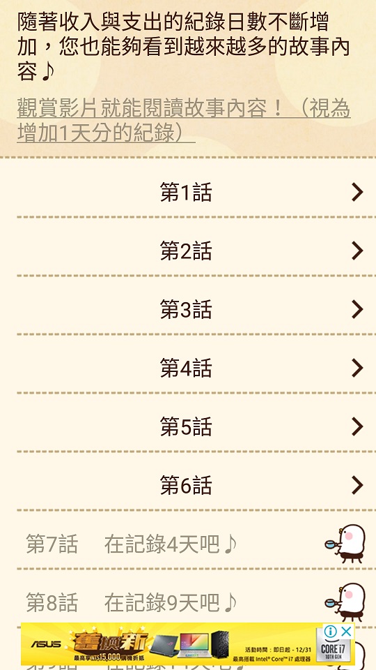 此APP另一個看點是,隨著你記帳的日數增加,使用者可以看到更多的卡納赫拉短篇漫畫故事,並且可以將漫畫中的插圖下載保存。而為了看到更多有趣的故事,就會提升使用者的記帳動機,比起被動的通知提醒記帳,主動式的提升記帳樂趣,將其化為生活中的例行工作,才能最有效的養成記帳習慣 。