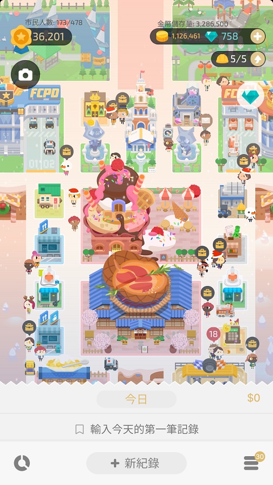 記帳城市將記帳化為更直接的遊戲,使用者化身為一座城市的市長,每當紀錄一筆帳目時就會產生一棟相對應類別的建築,同樣的建築物更可以合成升級,隨著記帳條目的增加,便能使得自己的城市更加蓬勃發展,擁有更多更炫麗的建築物和更多的居民進入城市。另外,還有許多的主題背景可做更換,讓同一座城市以各式各樣的姿態展現其獨特的城市魅力,在建立成就感的同時有效提升記帳的動機。同樣除了基本的類別圖表外,此APP也以視覺化的設計,提供的消費的趨勢變化,看到整年度的消費情況,以及預算設定功能,協助管理花費。