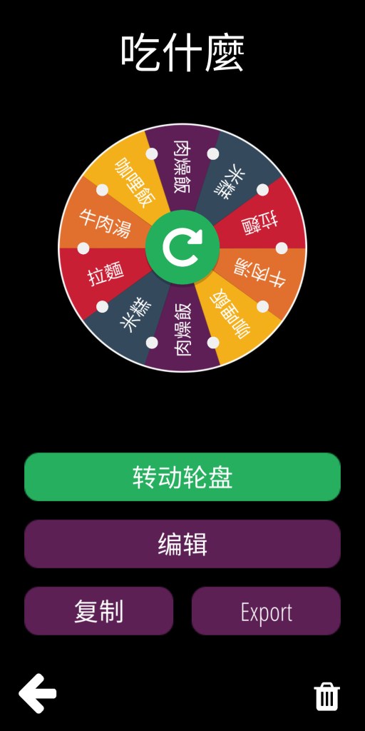 步驟一:打開決策輪盤,選擇輪盤「吃什麼」,並點選轉動輪盤