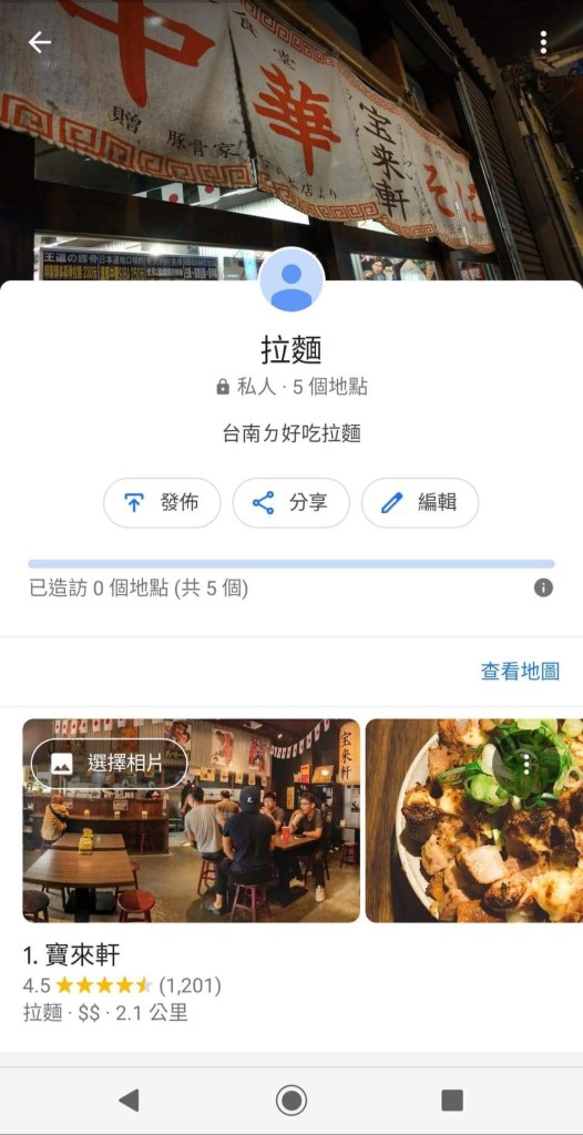 步驟三:開啟Google地圖→我的地點→已儲存→目標食物類別