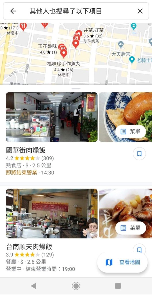上面功能使用完後,若還想添加更多美食,又或是全部店家都沒有滿意的,點選進某一店家頁面,並滑動螢幕到最下方,就會看到「其他人也搜尋了以下項目」